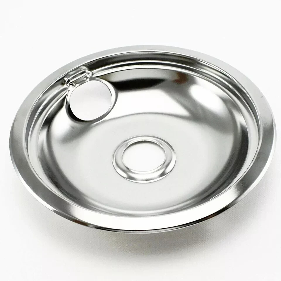 The Stove Top Drip Pan is an OEM replacement part for Whirlpool ranges. It is the shallow metal pan located below the stove burner elements that collects grease and food particles. The drip pan helps direct spills and drips away from the burner area to the bottom drawer for easy cleanup.