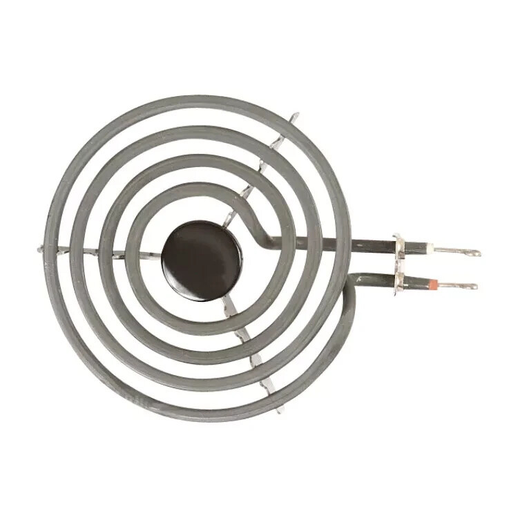 This surface burner heating element is six inches in diameter. It has four turns and looped terminal ends. Sold individually.
