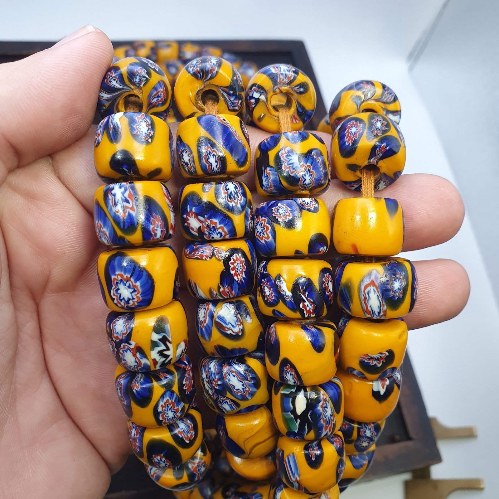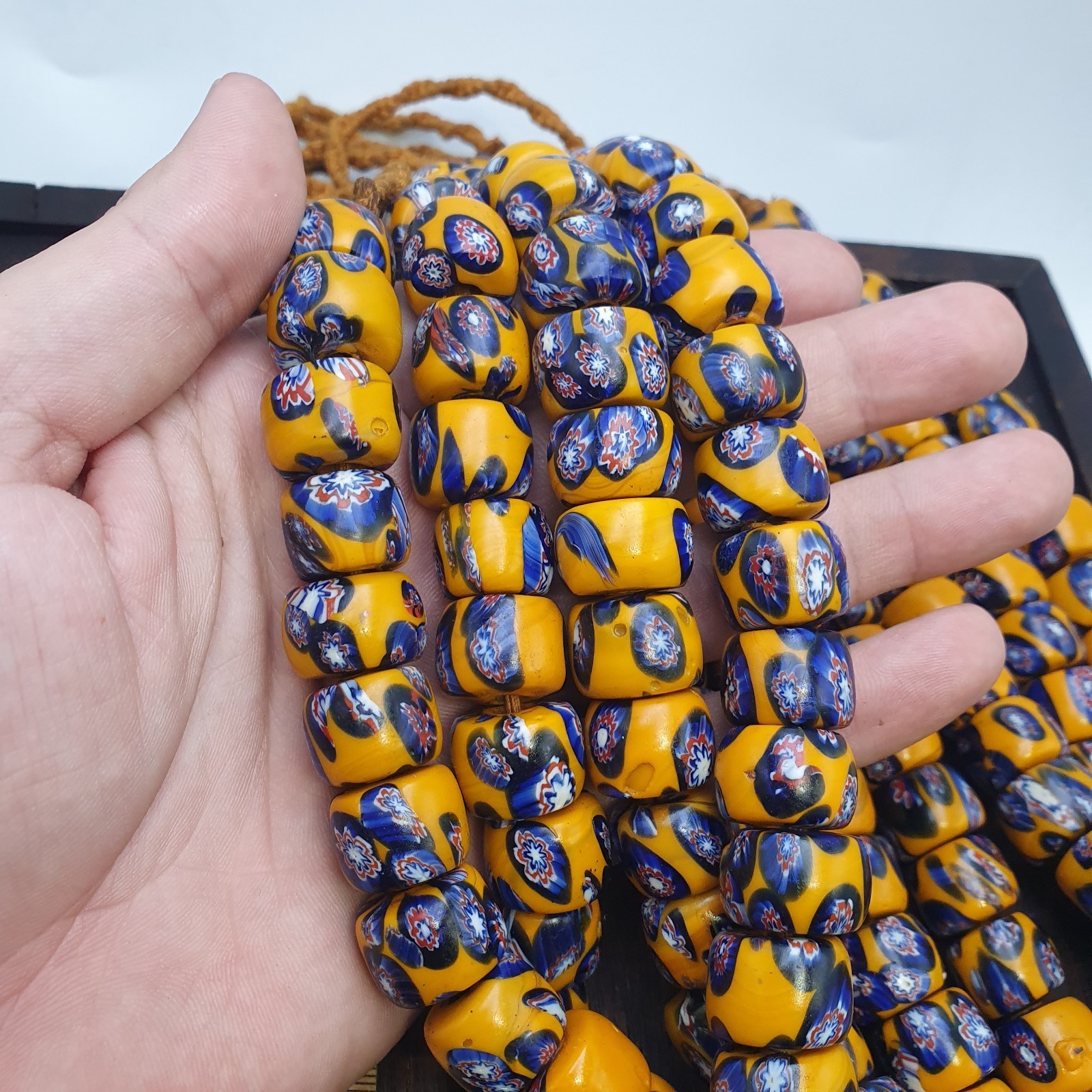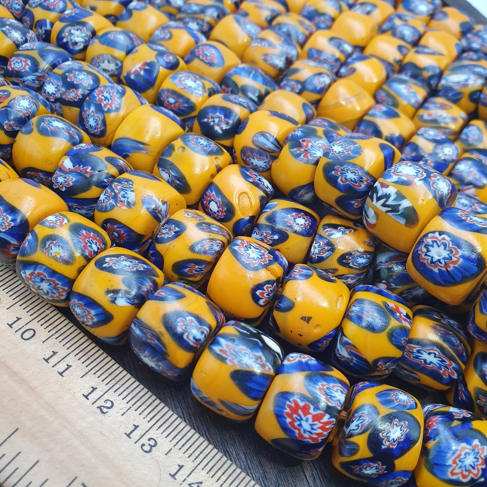 Perline Millefiori floreali stile veneziano vintage giallo audace con...