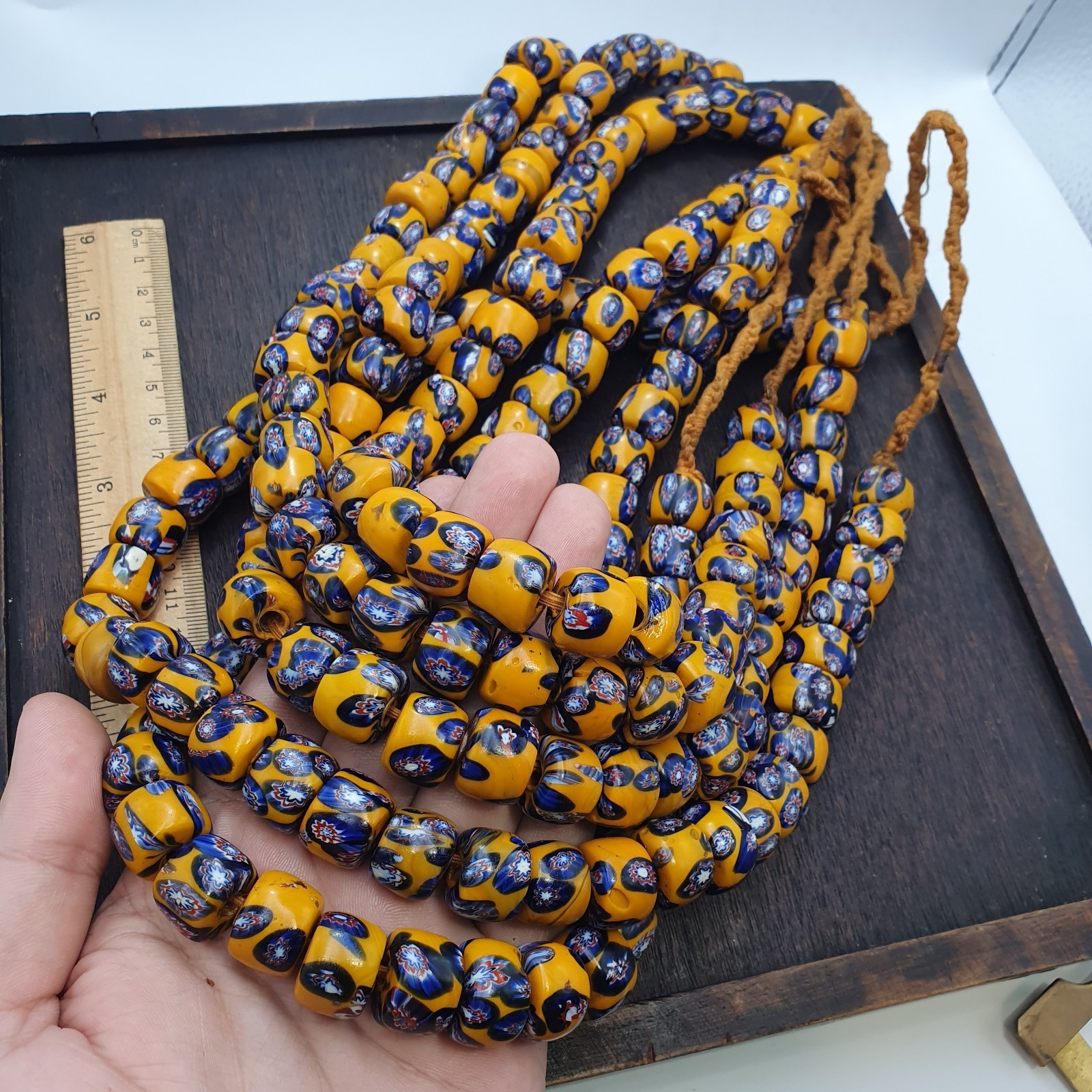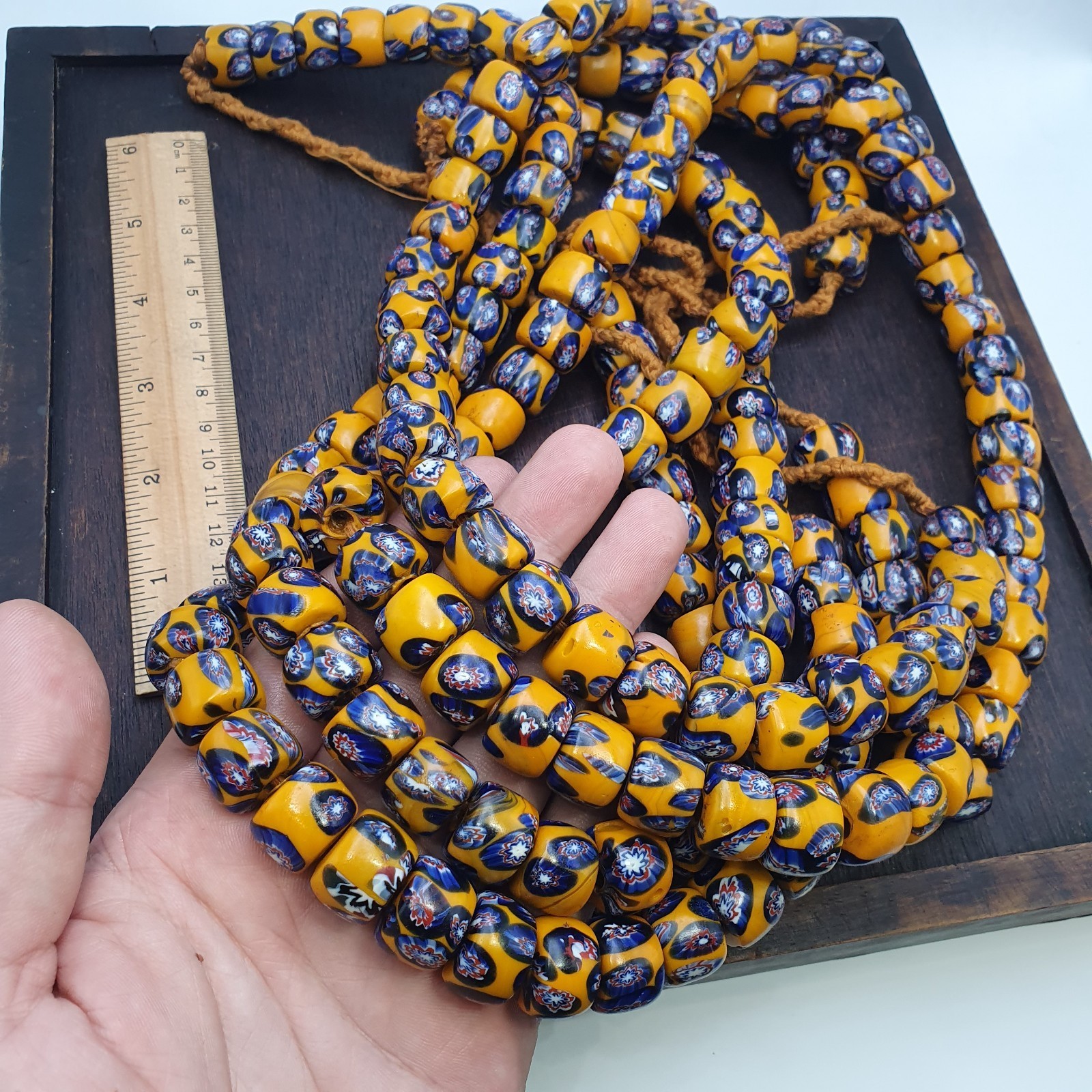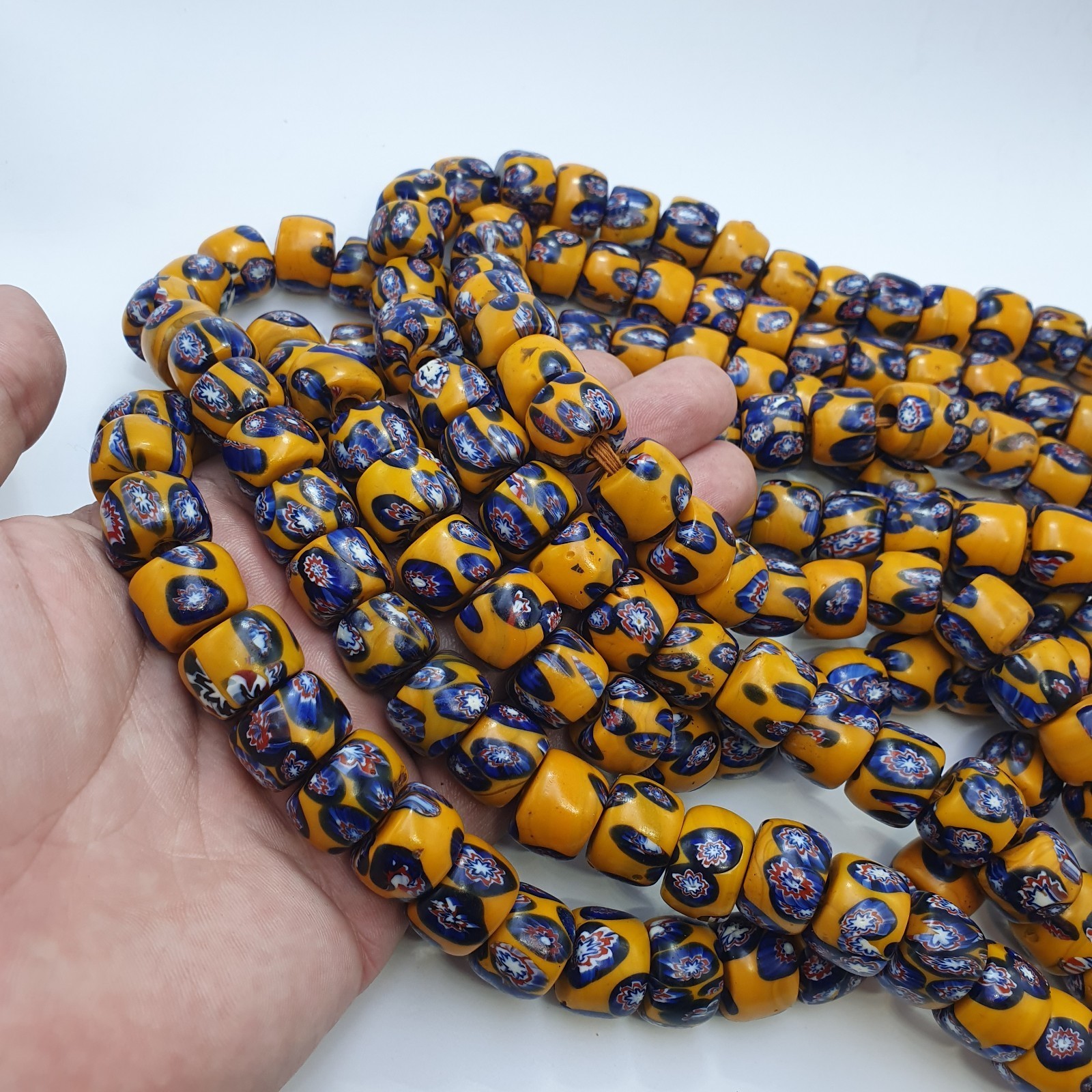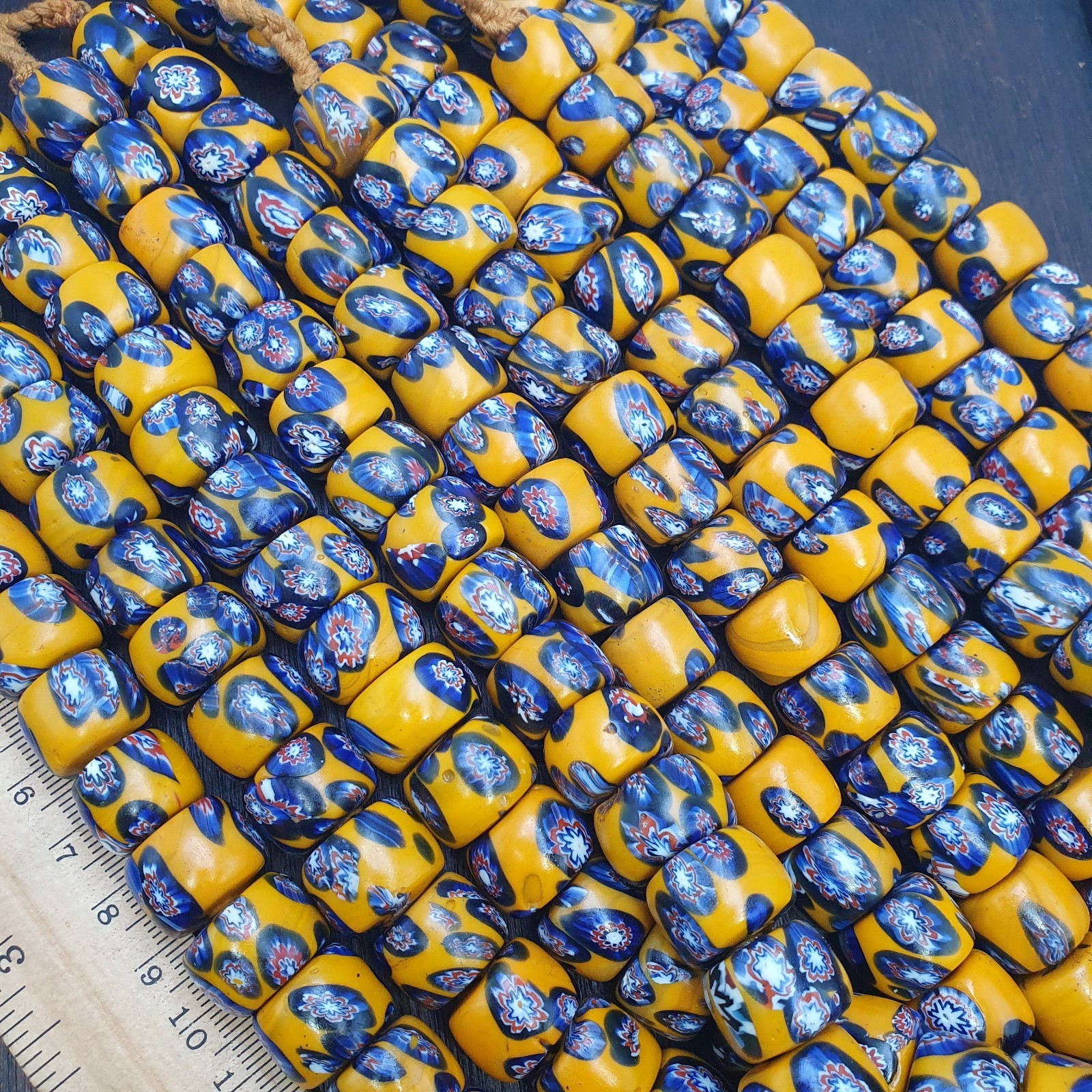 Perline Millefiori floreali stile veneziano vintage giallo audace con...