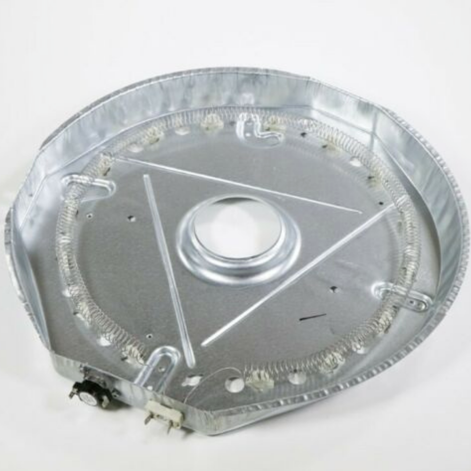 Dryer Heating Element and Housing Assembly. 4.5KW 240V. Includes the high limit thermostat, back plate, ceramic insulators and the 5/16 inch terminal heater element. This is a new GENUINE Frigidaire replacement part.