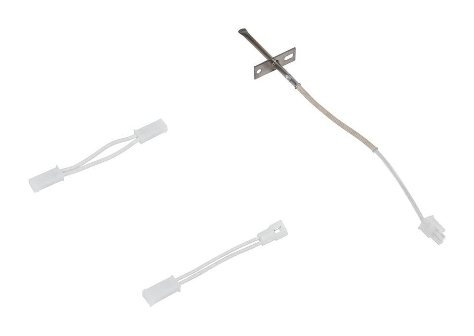The kit includes the temperature sensor, 2 wire harness adapters, and instructions. When functioning correctly, the oven sensor should register approximately 1050 ohms at room temperature. This part is compatible with various brands, including Whirlpool, Roper, Admiral, Maytag, Hardwick, Jenn-Air, Estate, Magic Chef, Crosley, Inglis, Norge, Modern Maid, Amana, Kenmore, KitchenAid, Caloric, and IKEA.