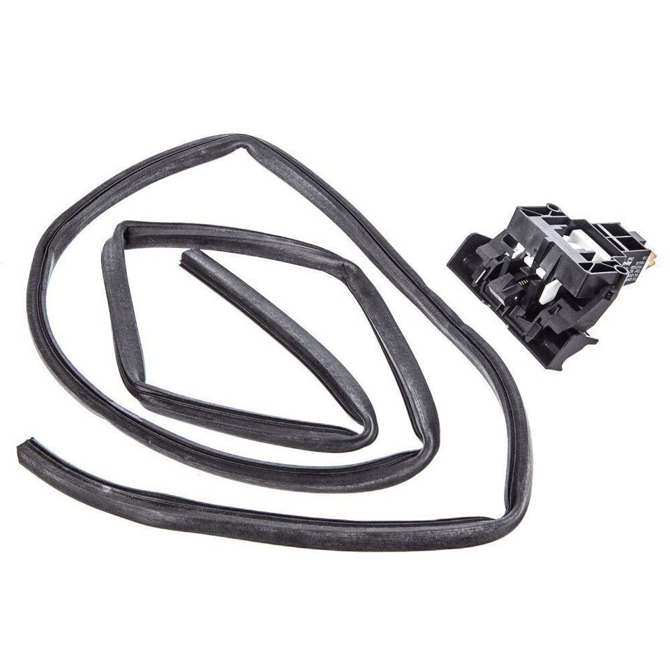 The Frigidaire Dishwasher Door Latch Kit is an OEM Replacement Part available in black. This comprehensive kit includes a latch, handle, switches, and a door gasket. The door latch ensures safe dishwasher operation by prohibiting it from running with the door open. The gasket functions as a seal around the door, preventing water leakage during cycles. If your dishwasher door isn't securely shutting or is leaking, this kit may be required.
