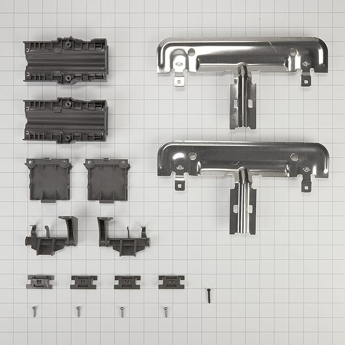 The Whirlpool Dishwasher Top Rack Adjuster Kit is an OEM replacement part that is compatible with Whirlpool brand dishwashers. This kit includes all necessary parts for the left and right sides and installation instructions.