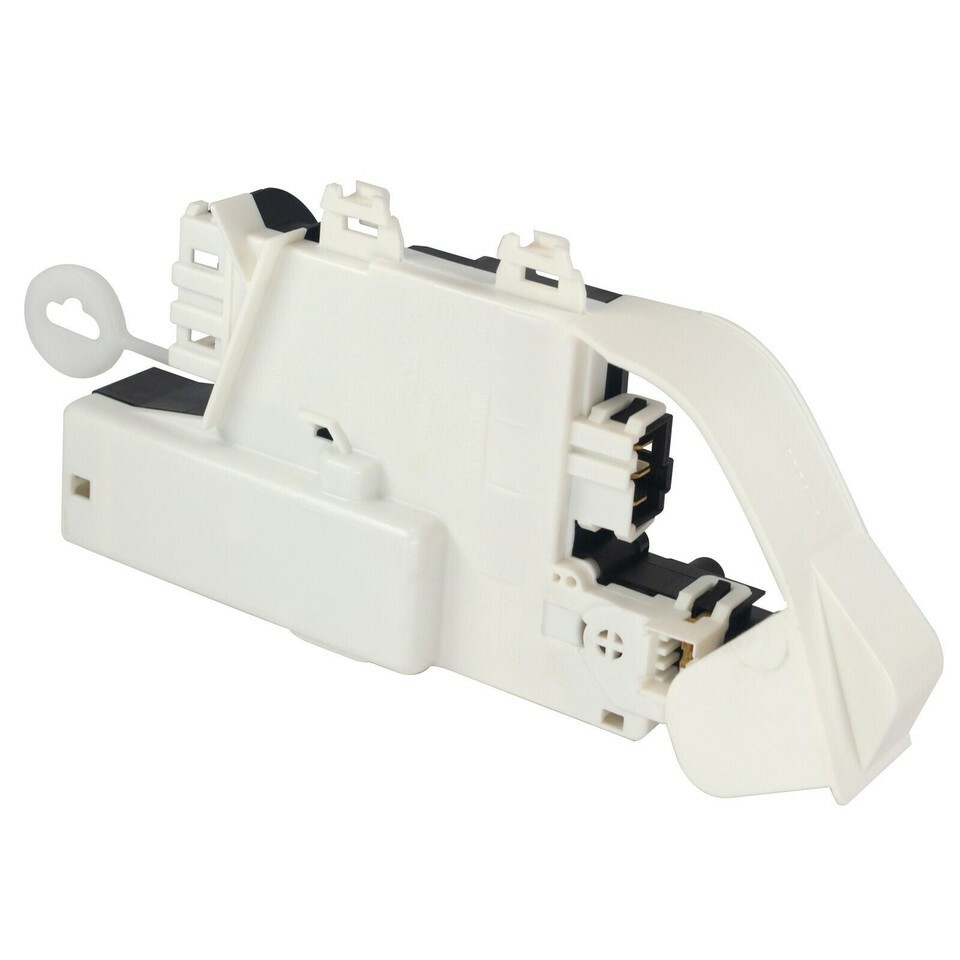 This Door Latch Assembly is an OEM replacement part. It is responsible for securely latching and locking the washer door during operation. The door latch assembly is typically located on the cabinet of the washer, where it engages with the corresponding latch mechanism on the door. It ensures that the washer door remains closed tightly, preventing water leakage and allowing the appliance to function properly.