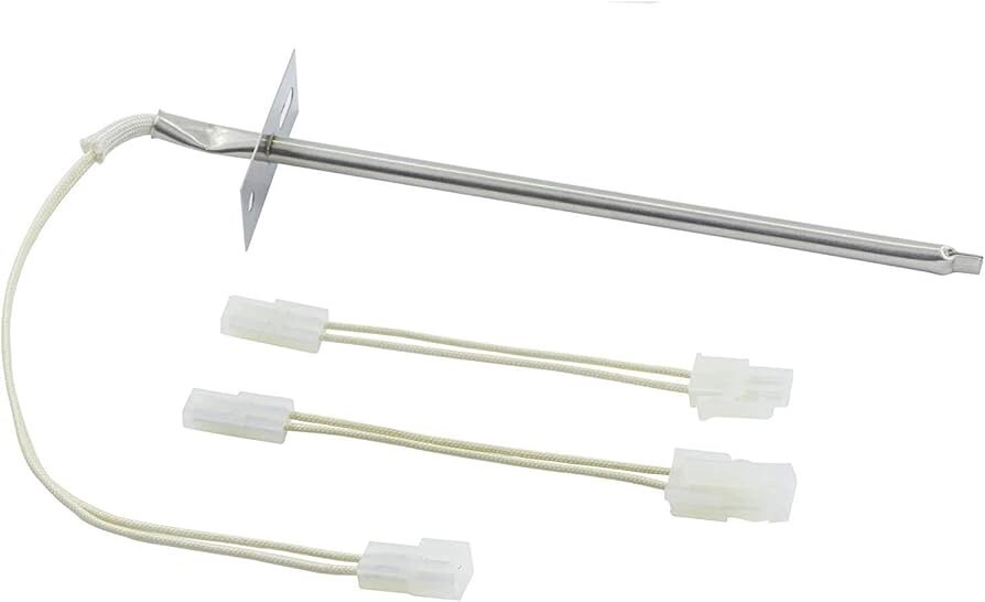 This sensor can replace various long-tipped oven sensors and comes with two wire harness adapters for compatibility with various models. For functionality testing, a multi-meter can be used, with the model-specific manual providing the appropriate resistance values for the specific appliance.