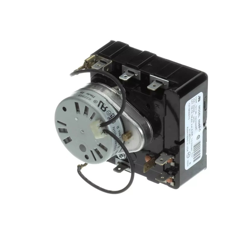 This dryer timer is used to control the unit's cycles by regulating the length of time that power is directed to each setting.