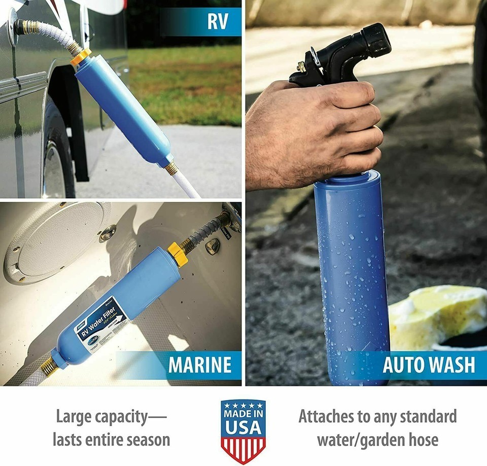 RV Water Filter for Boat Camper Garden Hose Reduces Bad Taste Smells Chlorine