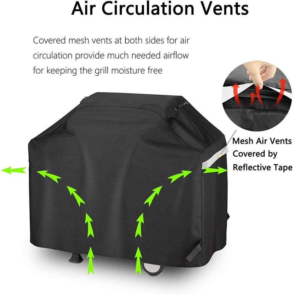 ?Useful Air Vents?Wide covered mesh vents at both sides for air circulation to keep the grill moisture free. ?Durable Stiching?Reinforced stitches provide additional strength and durability, and bound thicked edges to prevent from rip easliy. ?Night Light Reflective Tape?You can white-reflective tape within 300 meters in the dark,quickly find your grill.