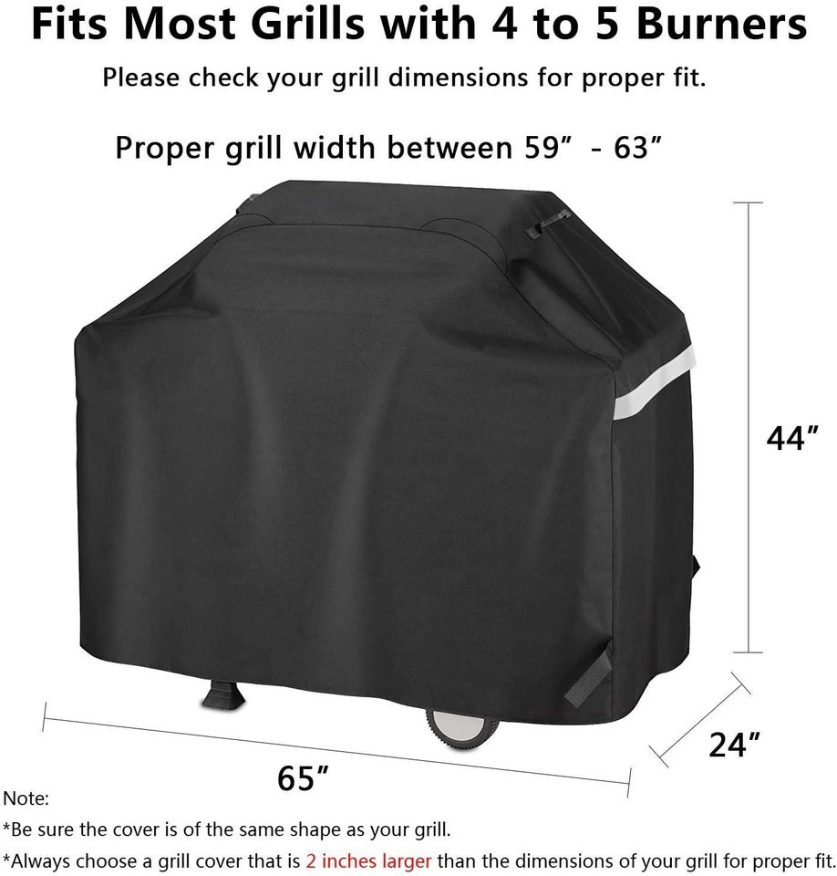 ?65 inch Grill Cover?- Dimension- 65"Width x 24"Depth x 44"Height. ?Fit most large BBQ gas grills from 59" to 63" width, fits most grills with 4 to 5 burners.