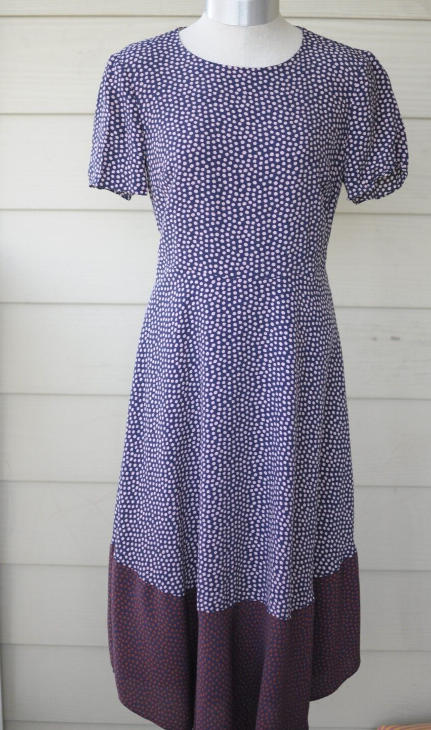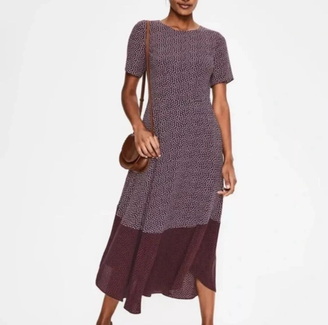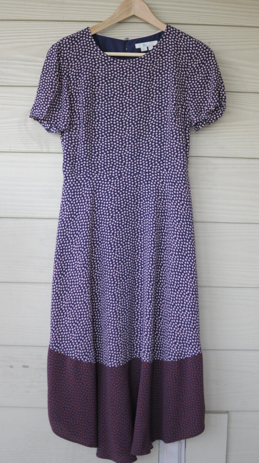 Boden Renee Midi Dress Pink Blue Polka Dot Short Sleeve Career Size 2P US