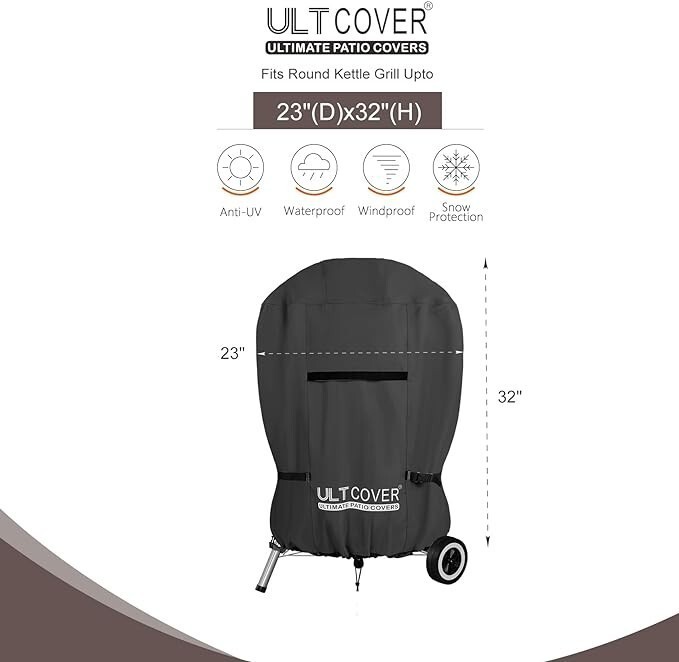 Waterproof 18" Charcoal Kettle Grill Cover Fits 23"Dx32"H Outdoor Protection