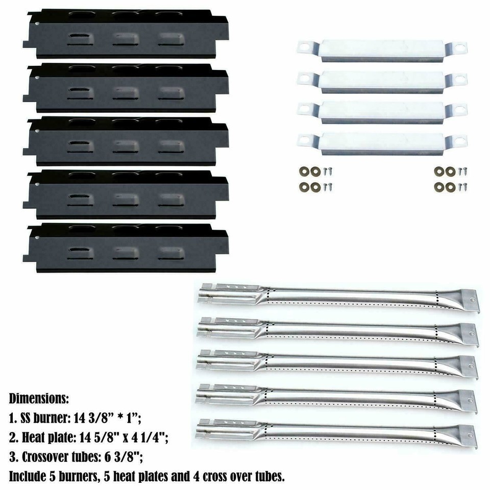 Direct store Parts Kit includes 5 Stainless Steel Burners ,4 Stainless Steel carry-over tubes and 5 Porcelain Steel Heat Plates