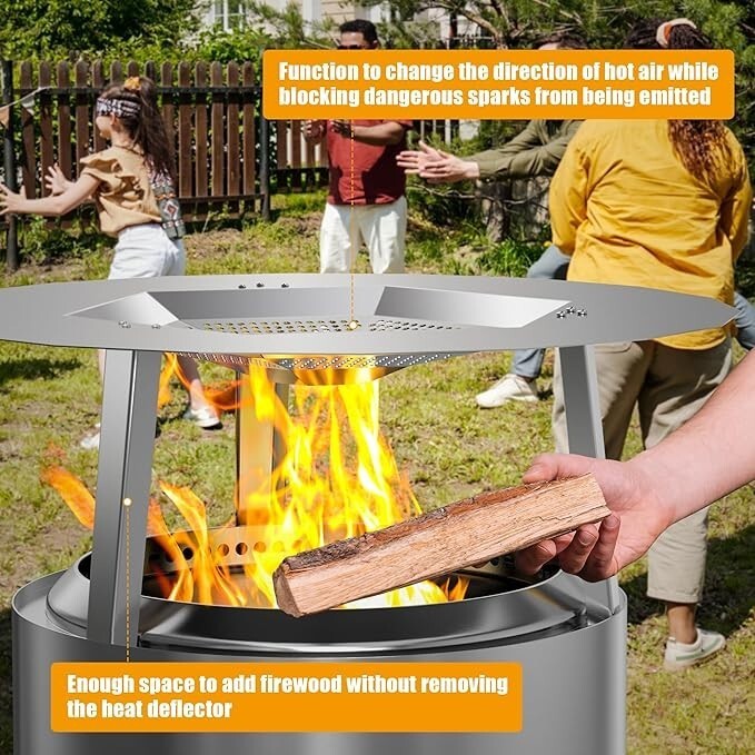 ?Enhance Fire Pit Efficiency?Our heat deflector efficiently redirects heat from stove fire pits vertically to the horizontal plane. This expands the heat radius, inhibiting hot air rise and dispersion for a safer and more comfortable experience around the fire pit.