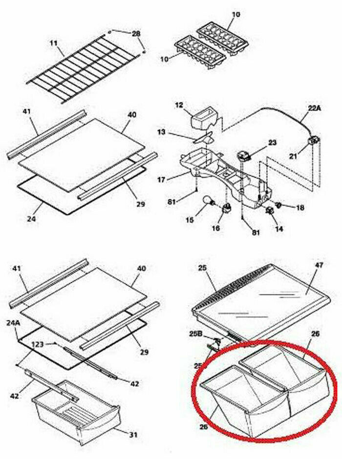 Fits refrigerator model numbers beginning with: FFTR18, FFHT18, FRT18, FRT8, CRTE18, FFHI18, FGHT18, CGHT18, CFTR18, CFHT18, BLRT86, DFHT18, DGHT18, FFUI18, FGTR18, FGUI18, FTHD18, FTMD18, GLHT18, GLRT, 2533, 2536, 2537
