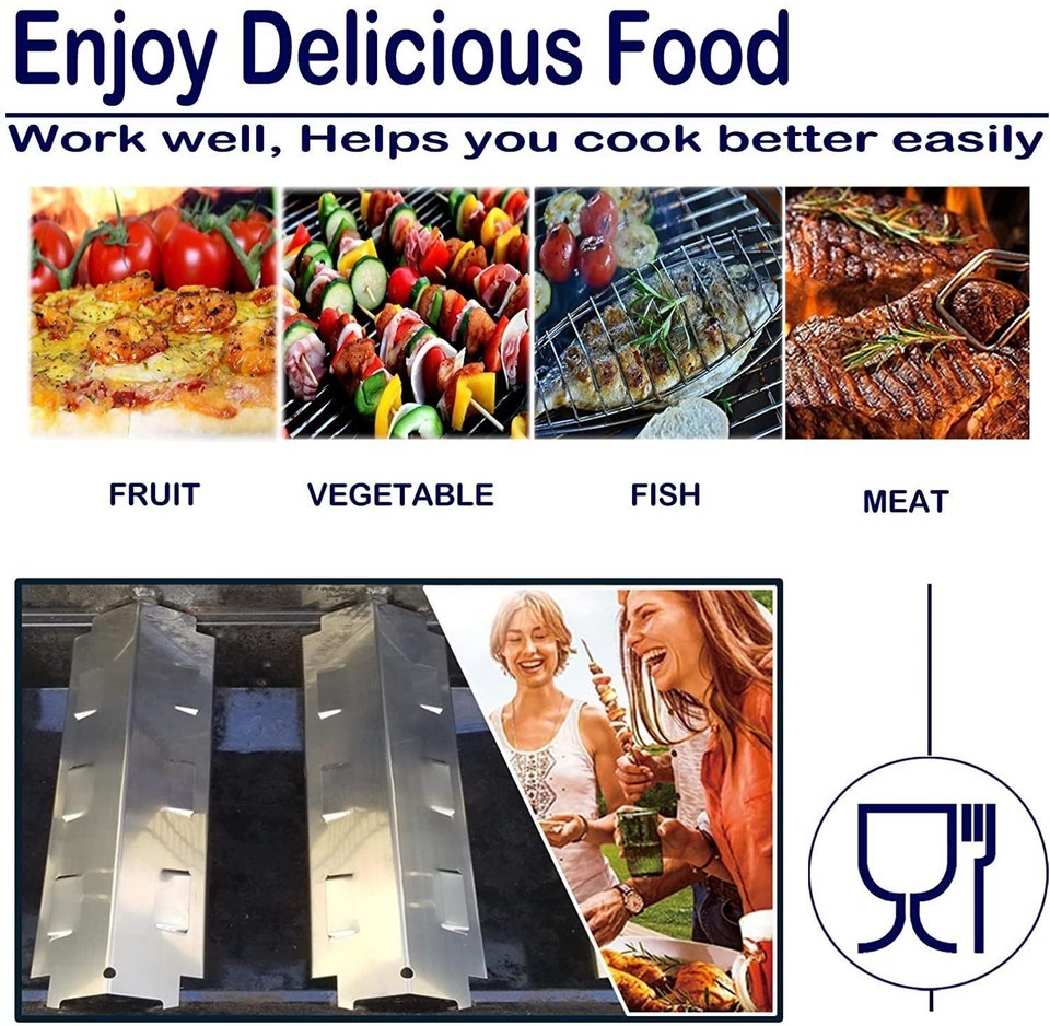 Gas grill burner cover will keep residues from getting into or blocking the burner tube holes, prevent food directly exposure to flame, help to catch drippings and oil, this flavorizer bar can heat your food evenly to add delicious and smoky barbecue flavor in your backyard outdoor gourmet gathering