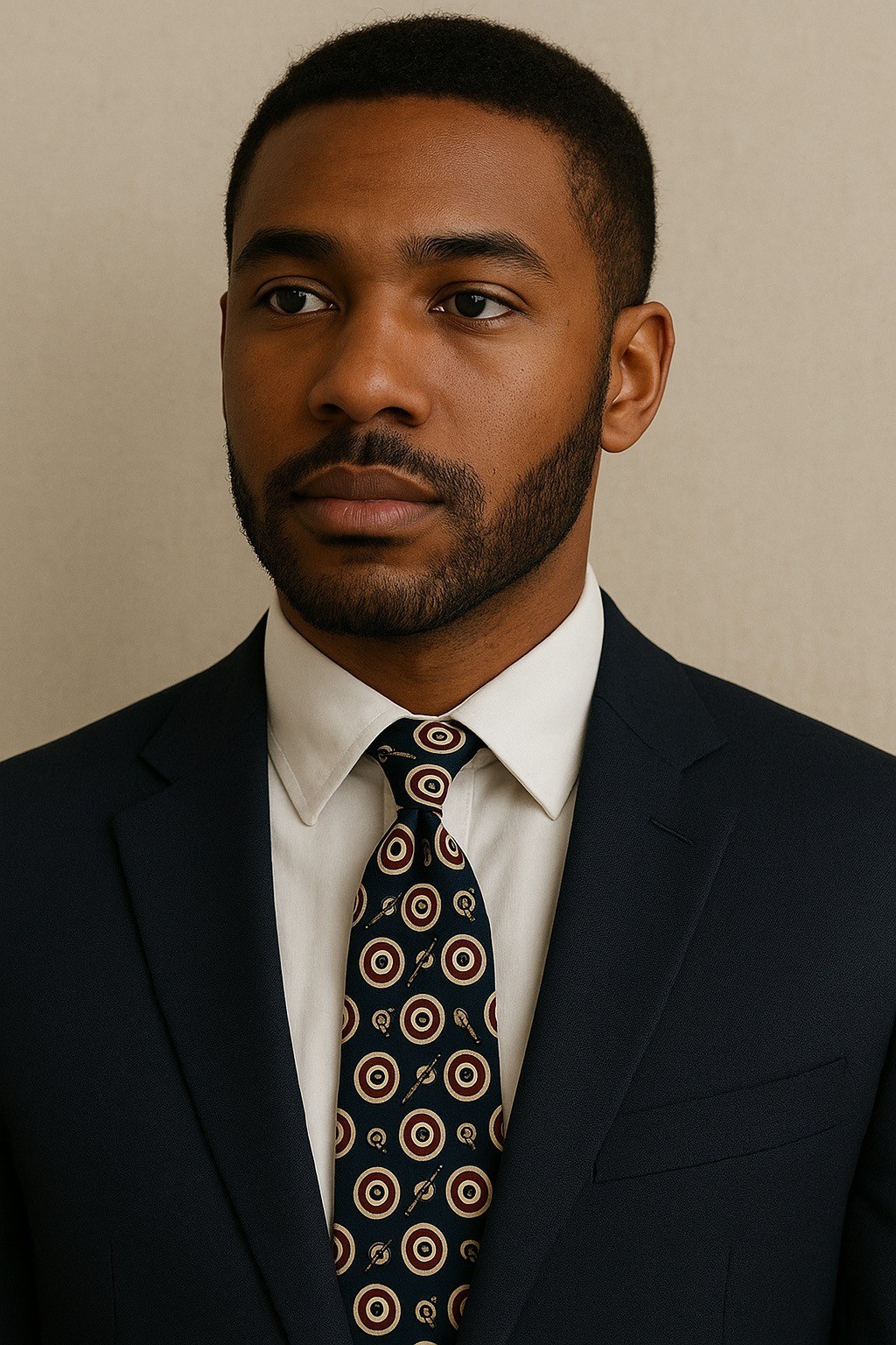 * Color: Navy with red, white, and gold target design