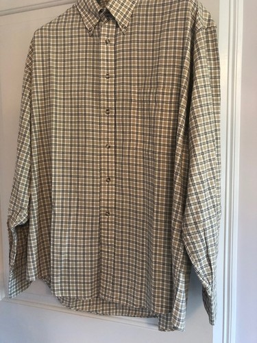 EUC BURBERRY LONDON Brown Beige Check Button Down Brushed Cotton Shirt SZ L