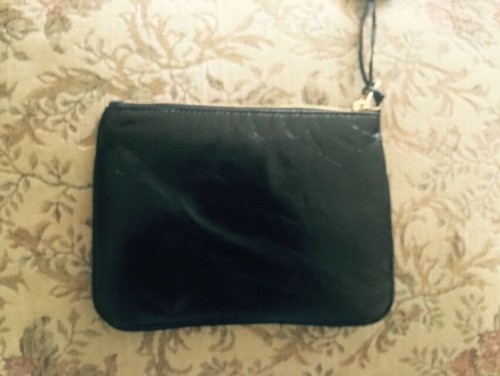 leather at back, and a gold-colored zip at top. Lined. Size 5 1/2 x 7
