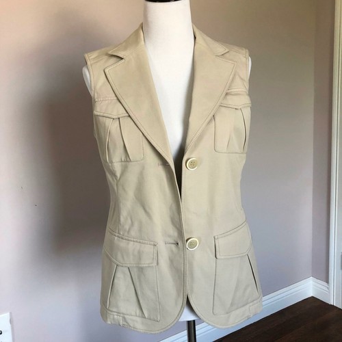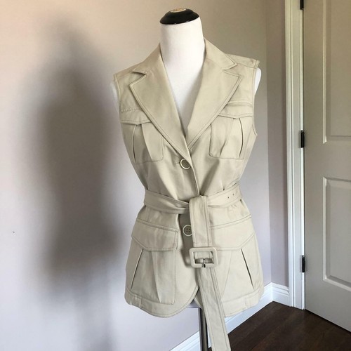 NWOT LAFAYETTE 148 Beige Cotton Blend Sleeveless Belted Jacket SZ 6