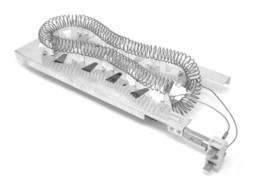 This Dryer Heating Element Assembly is an ERP replacement part that is designed to fit late-model Whirlpool, Kenmore, Estate, and Roper electric dryers. The assembly includes a metal frame, metal element coil, and ceramic coil insulators.