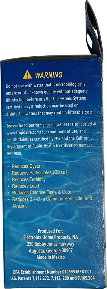 The Frigidaire PureSource Plus WFCB Refrigerator Water Filter is an OEM part for Frigidaire refrigerators. This water filter is specifically engineered to reduce impurities and contaminants in your drinking water and ice, including chlorine taste and odor, lead, cysts, and particulates.