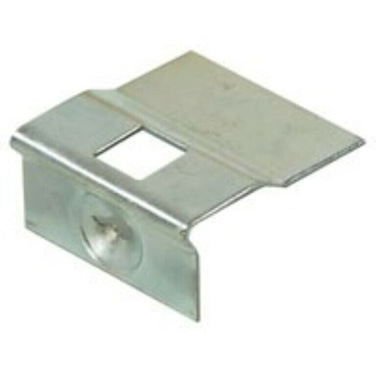 This door strike bracket is an inch long. It is made entirely of metal and is used with male door strikes of clothes dryers.