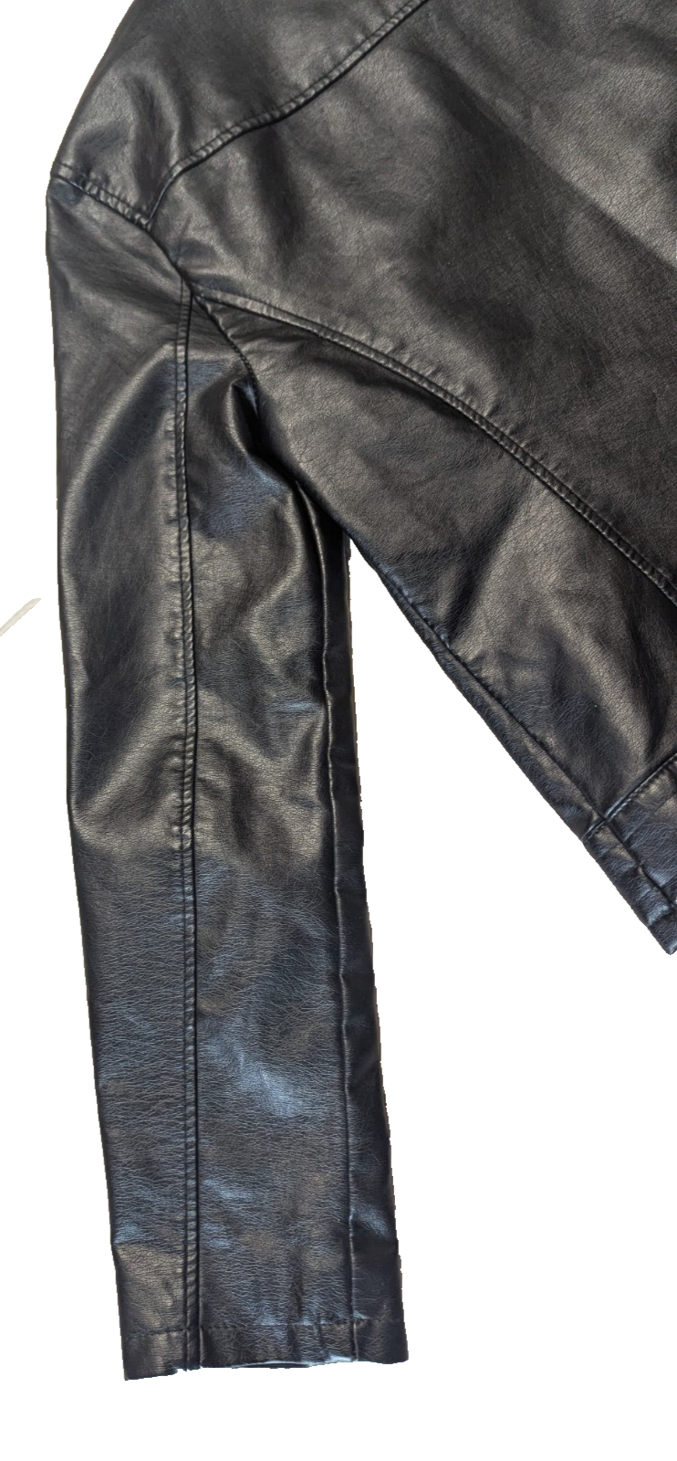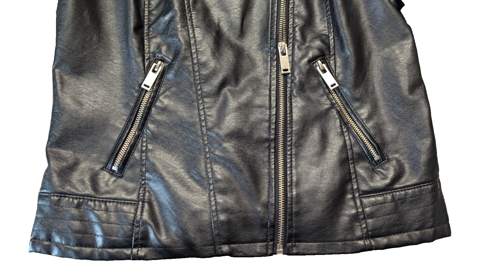 The New Look Women's Size Medium Black Faux Leather Moto Biker Cropped Zip Jacket is a stylish and versatile addition to any wardrobe.