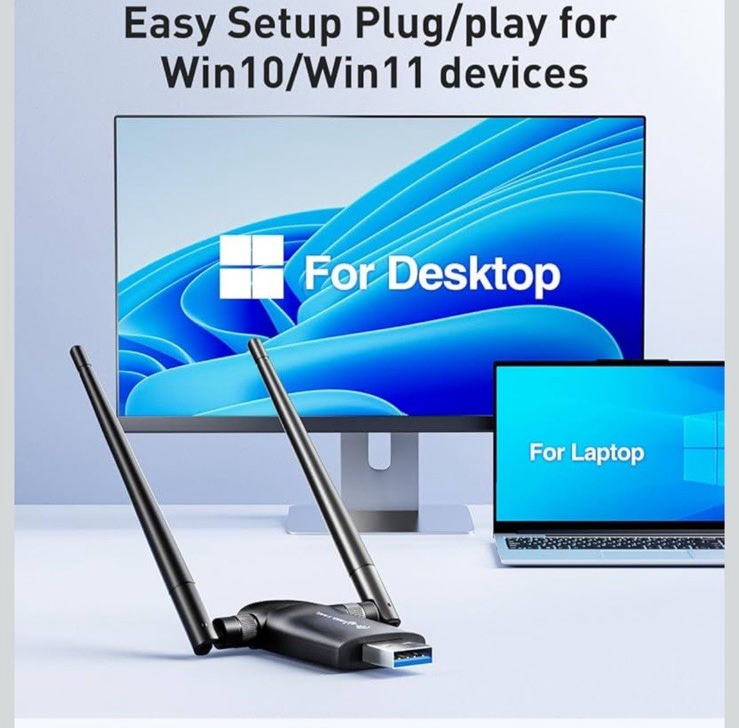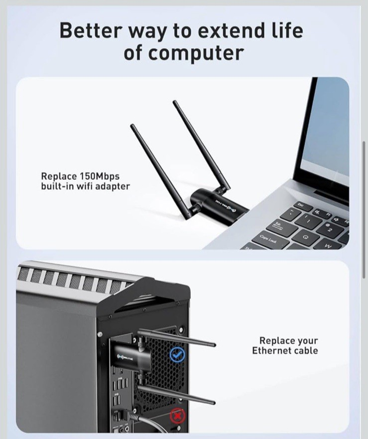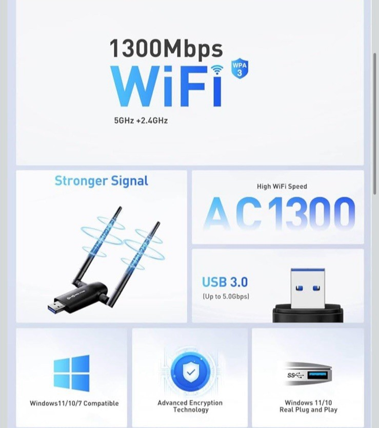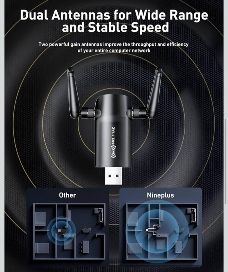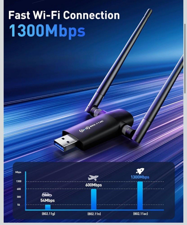 1300Mbps USB WiFi Adapter with Dual 5Dbi Antennas - Fast, Reliable Connectivity
