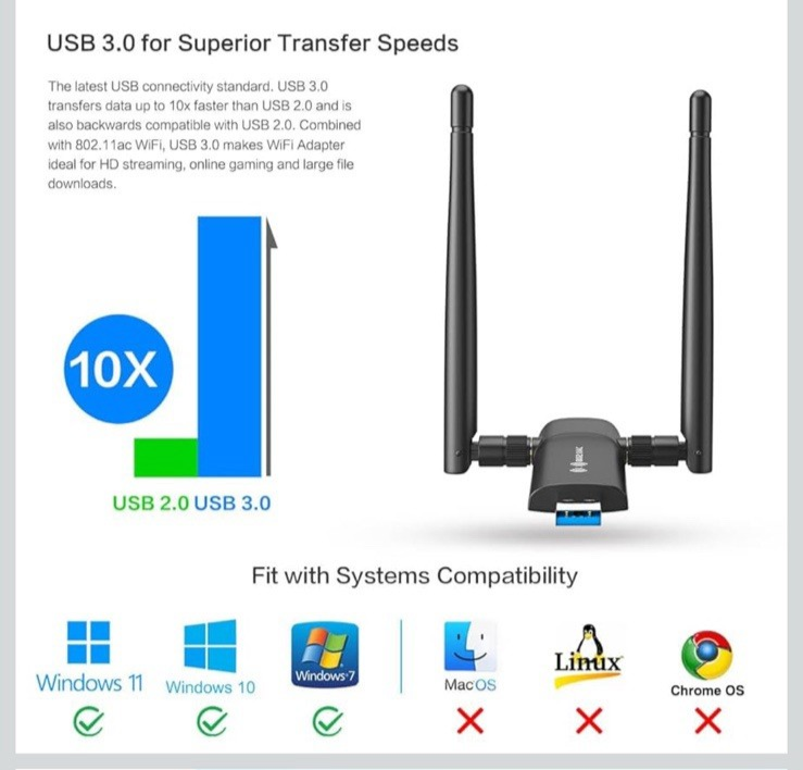 1300Mbps USB WiFi Adapter with Dual 5Dbi and 49 similar items
