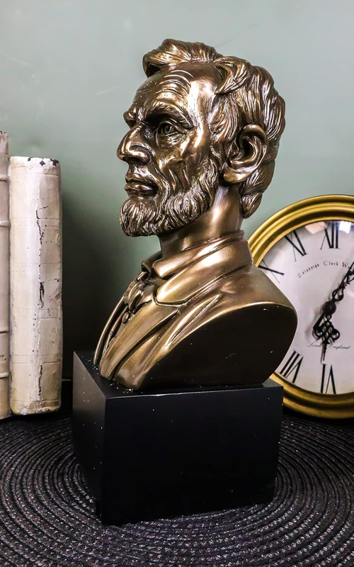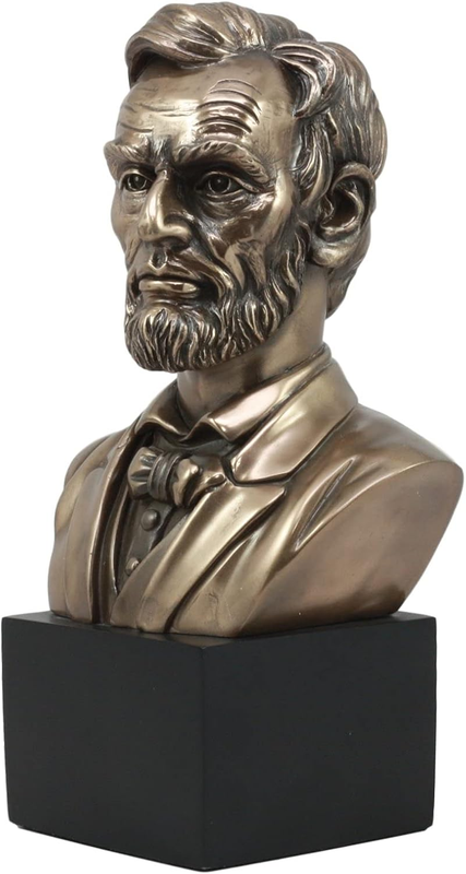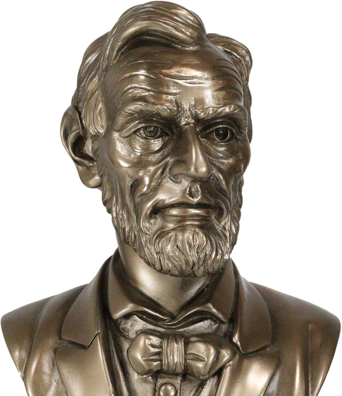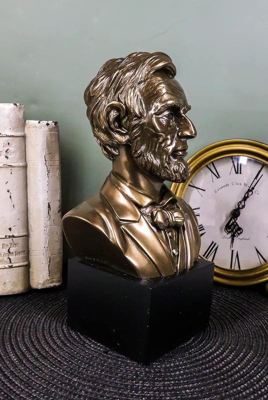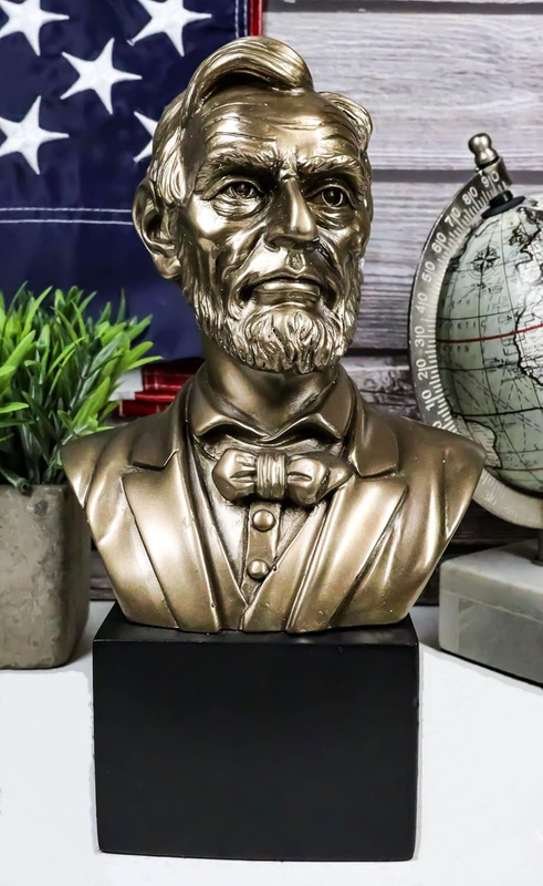 This Abraham Lincoln Bust Statue is made of designer composite resin, hand painted and polished. Color Tone may vary