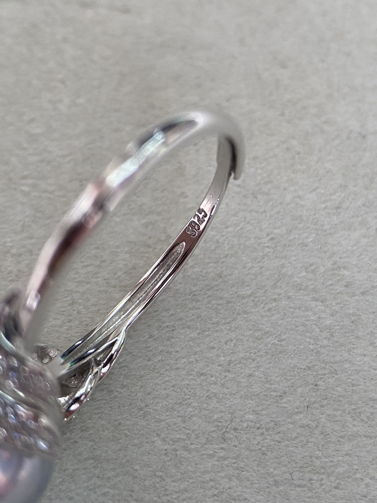 This exquisite ring features a Japan-made setting, sourced directly from the Japan International Jewellery Exhibition. The band is crafted from solid S925 sterling silver and plated in bright rhodium for enduring shine and resistance to tarnish. The open tail allows for size adjustment, fitting most finger sizes comfortably, while the inner shank bears an “S925” hallmark to guarantee authenticity. The shoulders are set with finely micro-pavéd white cubic zirconia in an asymmetrical wave motif, reflecting light with every movement—creating a sense of graceful fluidity and sophistication while maintaining focus on the central pearl.