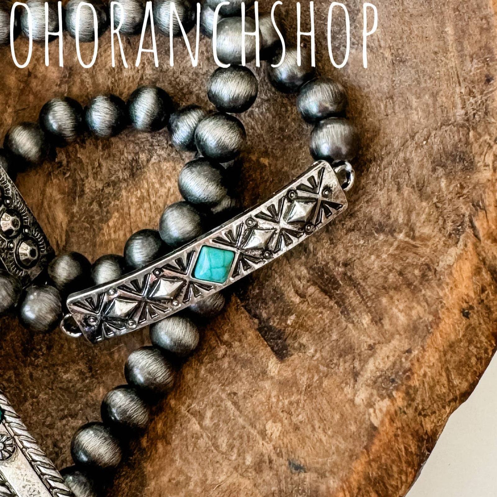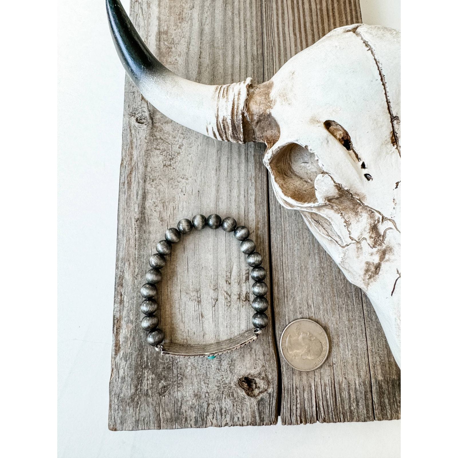 Western Semi Stone Stretch Bracelet - stretch bracelet - Silver round beads