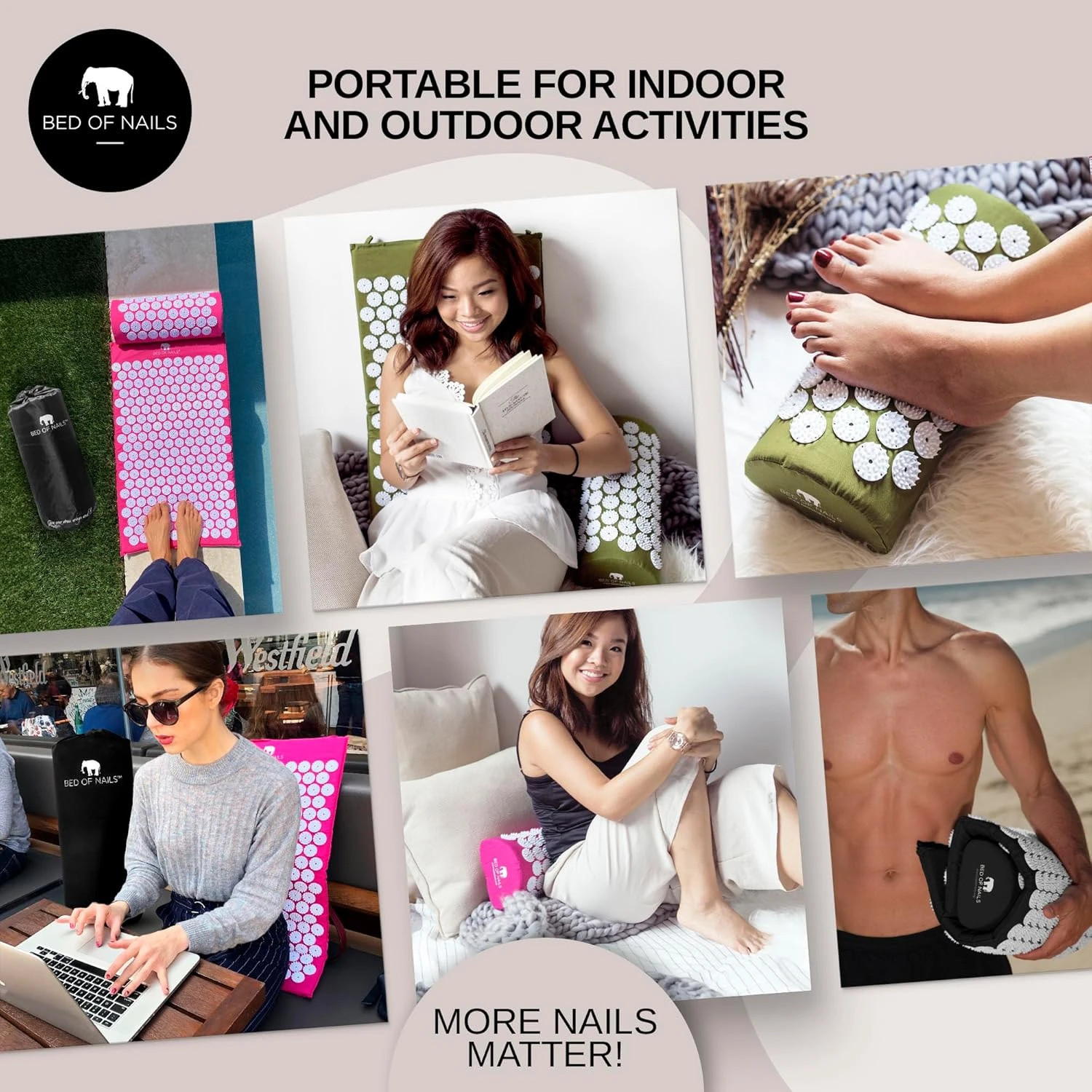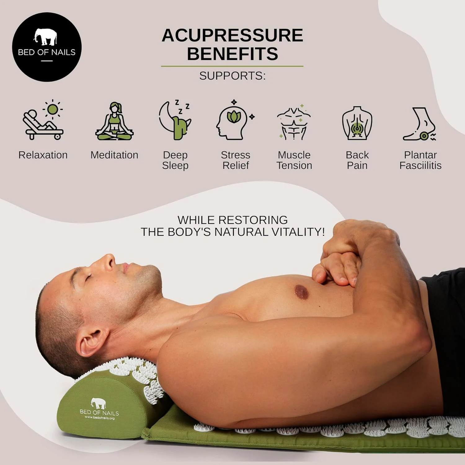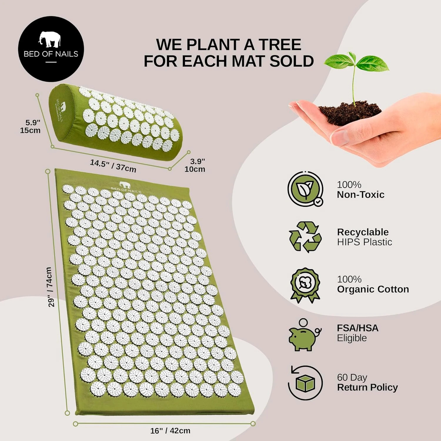 BED OF NAILS The Original Premium Acupressure Mat, Pillow Green w/ Bag