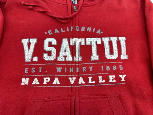 V. Sattui Winery Napa CA Med Unisex Red Zipped Hoodie Sweatshirt