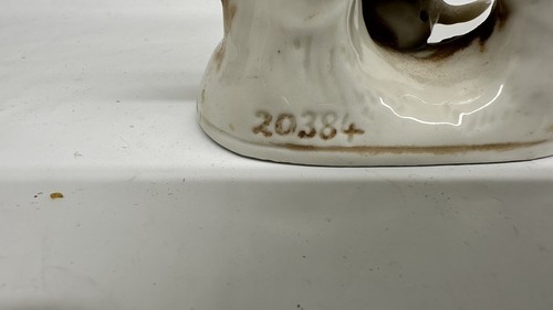 This vintage porcelain figurine features a little boy perched on a fence with a cute kitty. The figurine, made in Germany in the 1950s, showcases intricate details and measures 4 inches in height and 3.25 inches in length. The multicolor design adds a touch of charm to any collection, and the theme of people and animals is sure to appeal to any buyer. This small figurine is a great addition to any decorative collection and is perfect for porcelain enthusiasts.