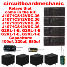 Relays that come in the kit: J1071CS12VDC.36, J1071CS12VDC.36, J1071CS12VDC.36, J1071CS12VDC.36, G2RL-1-E, G2RL-1-E, G2RL-1-E, G2RL-1-E and Capacitors 100uf, 220uf and 680uf