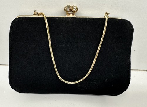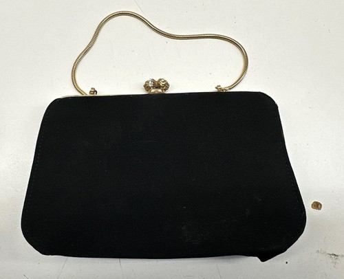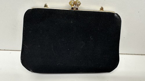 Add a touch of vintage glamour to your outfit with this black fabric clutch purse. Perfect for a night out or a special occasion, this purse features faux diamonds that add a touch of elegance to your look. The purse is made of high-quality fabric that is both durable and stylish, making it the perfect accessory to complete your outfit. Whether you're looking for a unique bag to carry your essentials or a statement piece to add to your collection, this vintage clutch purse is sure to impress.