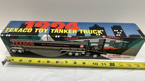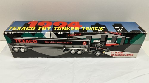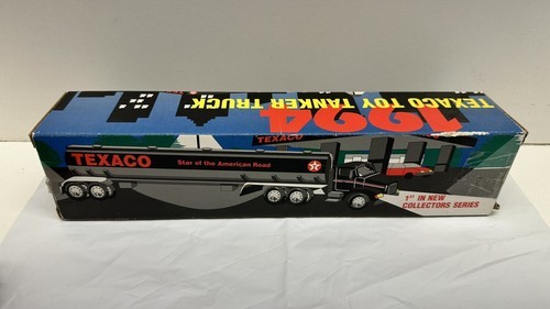 The brand of this toy tanker truck is Texaco, and it was manufactured in 1994. It is part of the first collector series, making it a rare and valuable find. This vehicle is perfect for display or play, and is sure to be a cherished item in any collection.