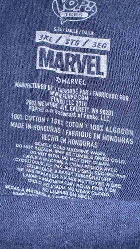 It is available in size 3XL and comes in a striking blue color. The shirt is not only perfect for summer, fall, and spring, but also for any occasion. The accents of the logo and the Pop! Tees character make it a must-have for any Marvel Universe fan.