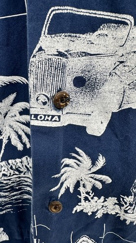 The shirt is designed with a collared neckline, button closure, and a regular fit, suitable for Men of all sizes. The shirt is pre-owned and boasts a classic and timeless look that never goes out of style. This shirt is perfect for anyone who loves the Hawaii Island theme and vintage fashion.