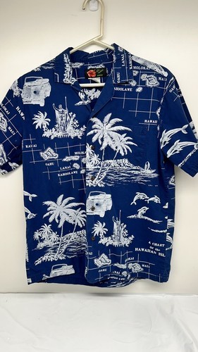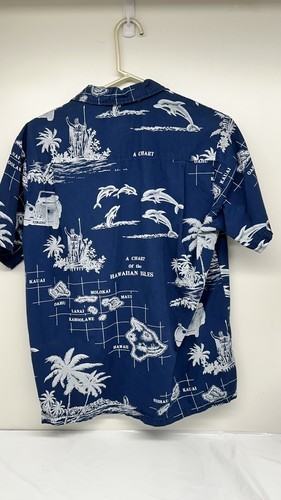 Vintage Ali'i Fashions Hawaii Button Shirt Mens Sm Aloha Design Map Blue Casual