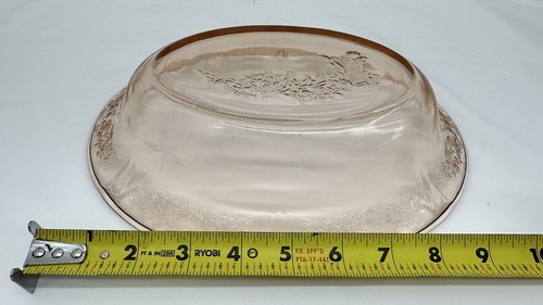 This vintage oval vegetable bowl is a beautiful addition to any collection. The delicate pink depression glass adds a touch of elegance to any table setting. The bowl is unmarked and has a federal style with a vintage original feel.