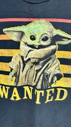 Star Wars Baby Yoda Wanted T Shirt Mens Black Tee Madalorian Graphic XL.