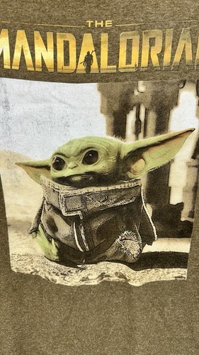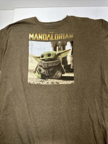 Star Wars Mandalorian Shirt Mens Teen XXL Brown Graphic T-shirt Baby Yoda Grogu