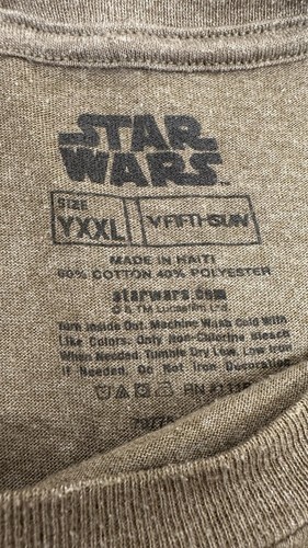 The shirt is designed with the beloved character Yoda and the iconic phrase "Star Wars" on the front, making it a great addition to any collection. The size is XXL and it is suitable for teens. Perfect for casual wear or for a Halloween costume, this Star Wars shirt is sure to impress.
