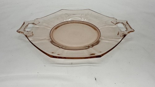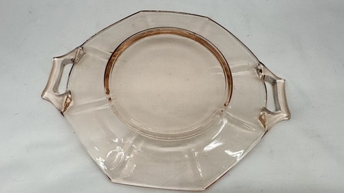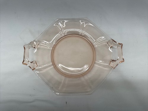 Vintage Hexagon Pink Depression Glass Cake/Sandwich Plate With Handles9” Long, 7