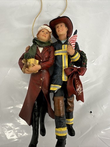 2002 Heroes Christmas Tree Ornament Firefighter Woman In Red Coat
