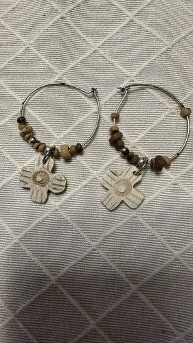 These handmade earrings feature a cross design with wood beads on silver tone hoops, giving them a modern bohemian chic style. They are lightweight and have a diameter of 1?Perfect for occasions such as engagements, Mother's Day, Christmas, or birthdays, these earrings are ideal for those who appreciate religious or retro-themed jewelry. Made in the United States, they are a unique and stylish accessory for any outfit.