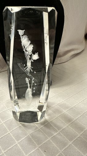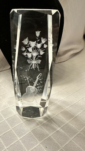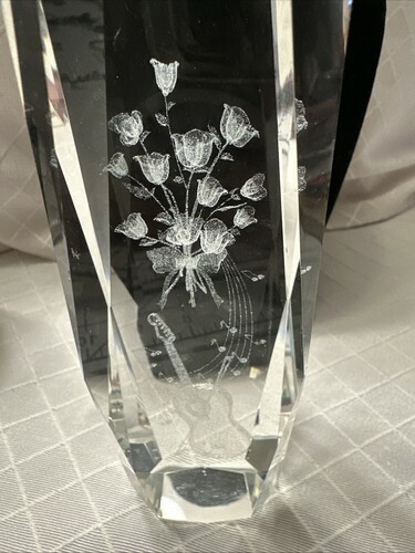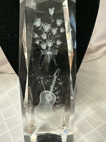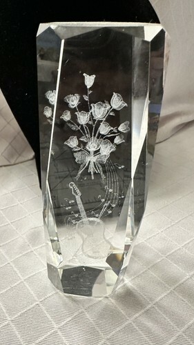 3D Laser Etched Crystal Art Glass Paperweight - Bouquet of Roses With Guitar